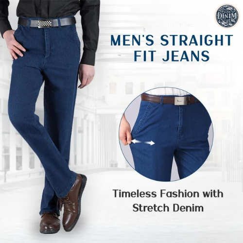 Men's High-Waisted Stretch Jeans Straight and relaxed fit design is not too tight and not too loose. We offer a sleek neat look for every gentleman.
